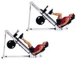 - Position yourself in a leg-press machine so that your back is against the pad and your feet are about 4 inches apart on the platform.